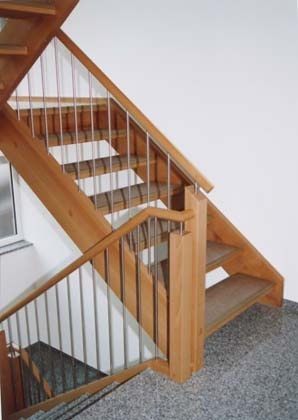 Edelstahlgeländer Senkrechte Stäbe ½ Podest-Wangentreppe